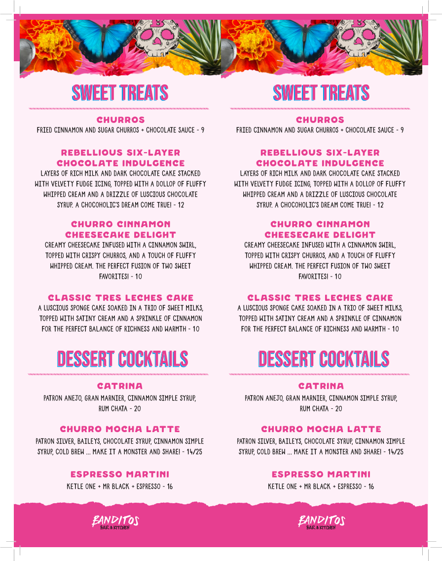 Don't miss the sweets either! Dive into the Fried Cinnamon Churros or the Decadent Six-Layer Chocolate Indulgence for an unforgettable finish. Pair your meal with a refreshing margarita during happy hour for the ultimate treat. With a spirited atmosphere and friendly service, Banditos ensures a memorable dining experience that will keep you coming back for more!